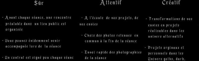 Sauf cas particulier, les tenues sont à fournir par le modèle. Je fournis les différents accessoires.
